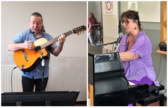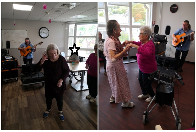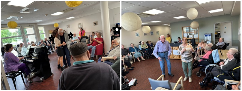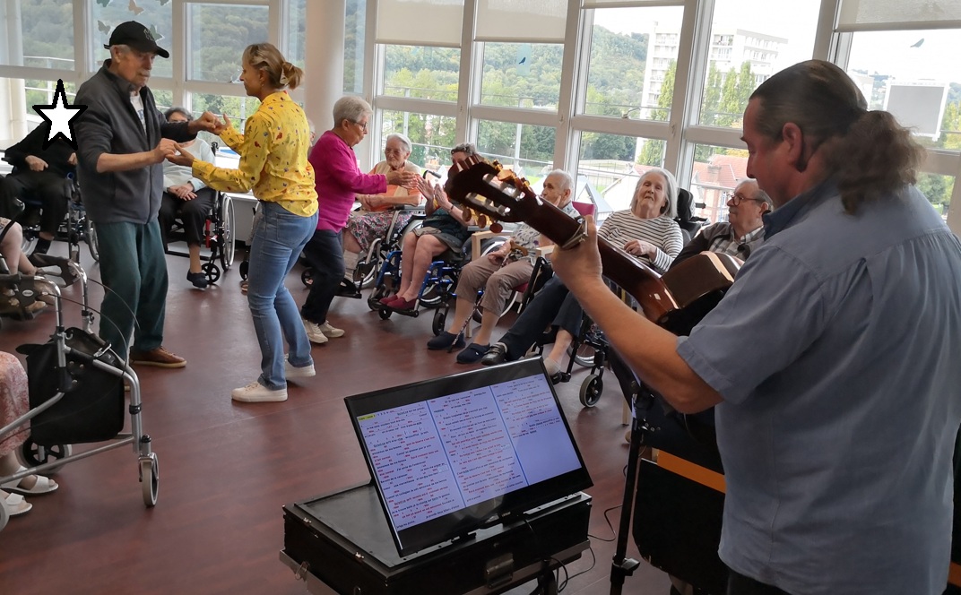 Tandis que Vanina pianiste et chanteuse a fait ses prestations durant une heure à la fermette puis au moulin. C’est magique de faire vivre notre magnifique piano. Vanina a réalisé un duo avec Jean. Puis avec Valérie, aide-soignante du Moulin.