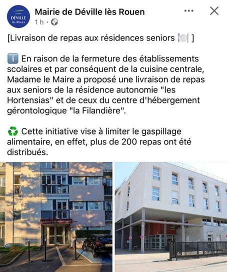 Les habitants de la Filandière remercient sincèrement Madame le Maire d’avoir pensé à eux en partageant les repas préparés par la cuisine centrale et qui n’ont pas pu être servis à la suite de la fermeture des établissements en raison de la tempête Goretti.