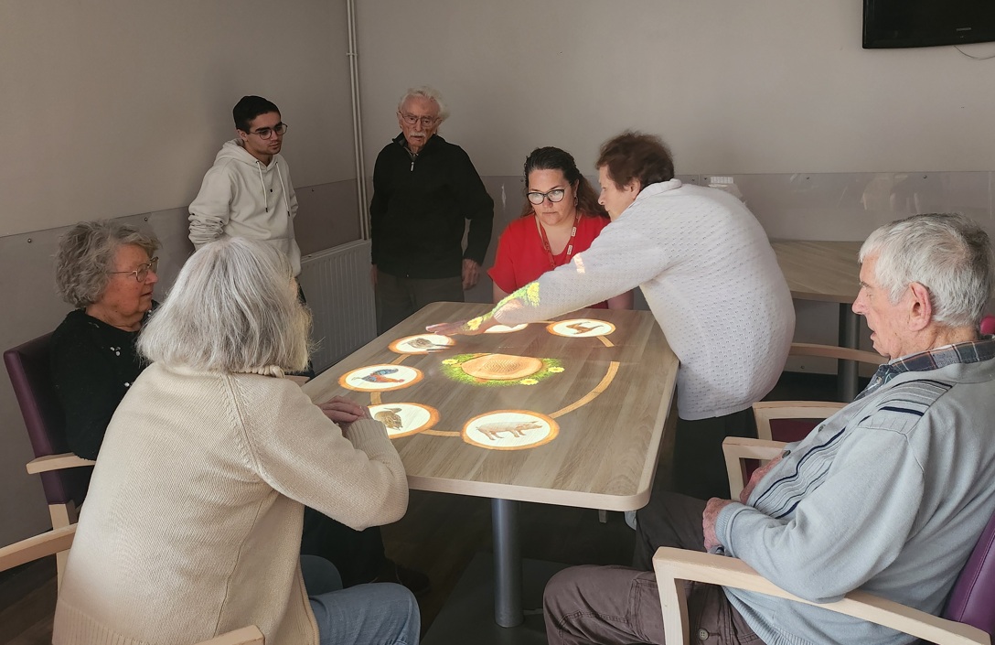 Avant de servir le goûter, les résidents ont pu se divertir sur la table magique.