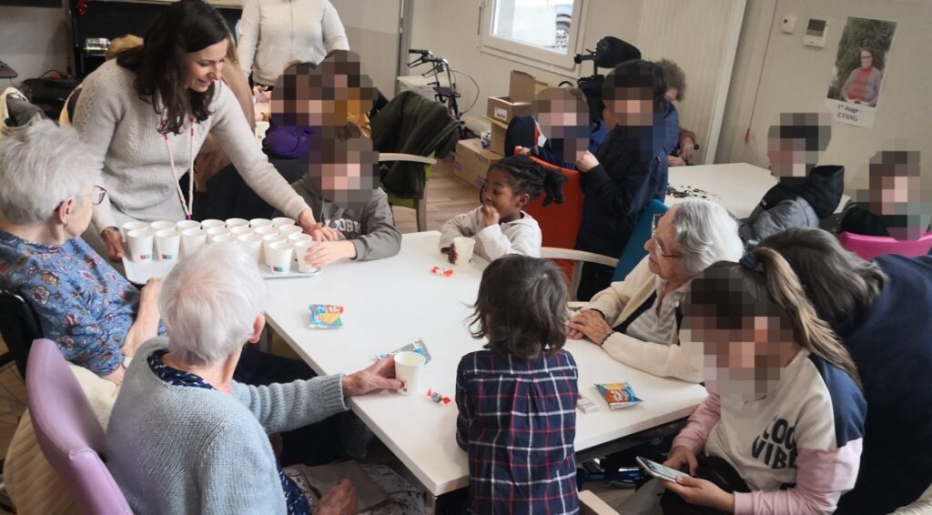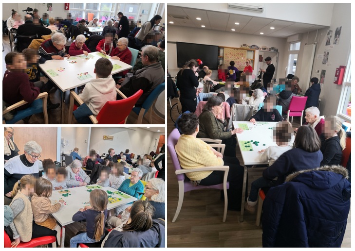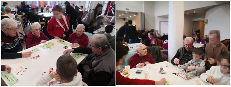 Une salle comble avec résidents, familles, enfants, instituteur(trice), parents d’élèves, bénévoles et bien d’autres pour jouer au fameux loto dont les numéros étaient tirés au hasard par les enfants.